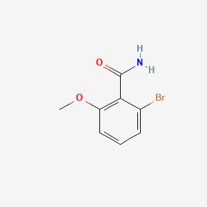 The synthesis of this key intermediate can be achieved through various routes. For instance, bromination of 2-methoxybenzoic acid derivatives can be controlled to favor the desired isomer. Once 2-bromo-6-methoxybenzoic acid is obtained, it can be converted to the corresponding benzamide through standard amidation procedures. This typically involves the activation of the carboxylic acid, often by converting it to an acyl chloride using reagents like thionyl chloride (SOCl₂) or oxalyl chloride, followed by reaction with ammonia or an ammonia equivalent.