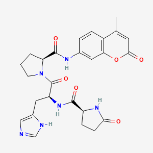 This compound is a synthetic compound designed as a highly specific substrate for Pyroglutamyl-peptidase II (EC 3.4.19.6), also known as TRH-degrading ectoenzyme. PPII is a zinc-dependent metallopeptidase that plays a crucial role in the inactivation of Thyrotropin-Releasing Hormone (TRH; pGlu-His-Pro-NH2) in the extracellular space.[1]