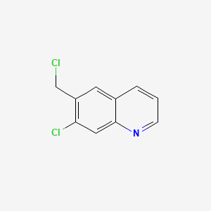 7-Chloro-6-(chloromethyl)quinoline serves as an essential building block in the development of various therapeutic agents. Its derivatives have shown significant biological activities, particularly in antimicrobial and anticancer domains.