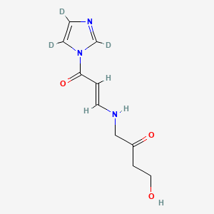 The synthesis of 4-Hydroxy-1-[[(E)-3-oxo-3-(2,4,5-trideuterioimidazol-1-yl)prop-1-enyl]amino]butan-2-one typically involves multi-step organic reactions including condensation and cyclization processes. The detailed synthetic route is crucial for producing the compound in a pure form suitable for biological testing.