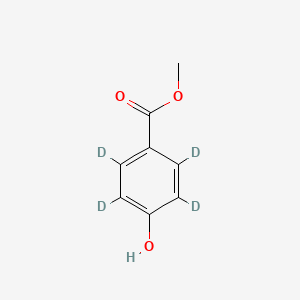 Methylparaben-d4 is a deuterated form of Methylparaben, a common antimicrobial preservative used in cosmetics, food, and pharmaceuticals.[3][4] The "d4" designation indicates that four hydrogen atoms on the phenyl ring have been replaced with deuterium atoms. This stable isotopic labeling makes it an ideal internal standard for bioanalytical and pharmacokinetic studies, as it is chemically identical to its non-labeled counterpart but distinguishable by its higher mass.[1][2]