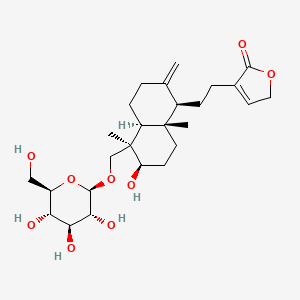 Andrographis paniculata (Burm.f.) Nees, commonly known as "King of Bitters," is a staple in traditional medicine systems across Asia, revered for its wide array of therapeutic properties, including anti-inflammatory, antiviral, and antibacterial activities[1][2]. The plant's rich phytochemistry is dominated by diterpenoid lactones, with andrographolide being the most prominent[1]. However, a number of structurally related diterpenoids, including this compound, are also present and are thought to contribute to the plant's overall medicinal effects. This compound is a glycosylated derivative of a diterpene, a structural modification that can significantly influence its solubility, bioavailability, and pharmacological activity. This guide focuses specifically on the discovery, isolation, and characterization of this compound, providing researchers with the necessary technical details to further investigate this promising natural product.