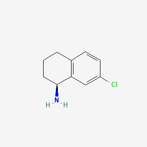 The mechanism of action of 1-NaphthalenaMine, 7-chloro-1,2,3,4-tetrahydro-, (1S)- involves its interaction with specific molecular targets, such as enzymes or receptors. The compound’s amine group can form hydrogen bonds and electrostatic interactions with active sites, influencing the activity of the target molecule. The chlorine atom may also contribute to the compound’s binding affinity and selectivity by participating in halogen bonding.