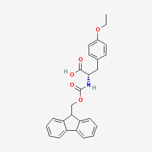 This compound is a derivative of the amino acid L-tyrosine, featuring two key modifications: a fluorenylmethoxycarbonyl (Fmoc) protecting group on the α-amino group and an ethyl ether linkage on the phenolic side chain. The Fmoc group is a base-labile protecting group that is fundamental to solid-phase peptide synthesis (SPPS), allowing for the stepwise assembly of amino acids into a peptide chain. The O-ethyl group provides a stable, permanent modification to the tyrosine side chain, enhancing its lipophilicity and altering its electronic properties compared to native tyrosine. This modification can be strategically employed in peptide-based drug design to improve metabolic stability, receptor binding affinity, and pharmacokinetic profiles.[1]