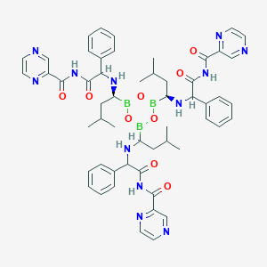 B1(OB(OB(O1)C(CC(C)C)NC(=O)C(CC2=CC=CC=C2)NC(=O)C3=NC=CN=C3)C(CC(C)C)NC(=O)C(CC4=CC=CC=C4)NC(=O)C5=NC=CN=C5)C(CC(C)C)NC(=O)C(CC6=CC=CC=C6)NC(=O)C7=NC=CN=C7 |