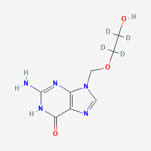 This compound, chemically named 2-amino-9-((2-hydroxyethoxy-1,1,2,2-d4)methyl)-1,9-dihydro-6H-purin-6-one, possesses a molecular structure where four hydrogen atoms on the ethoxymethyl side chain of Acyclovir are replaced with deuterium atoms. This isotopic labeling provides a distinct mass signature for analytical differentiation from the unlabeled drug.