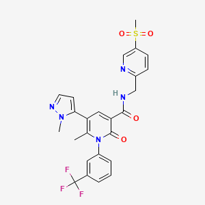 CC1=C(C=C(C(=O)N1C2=CC=CC(=C2)C(F)(F)F)C(=O)NCC3=NC=C(C=C3)S(=O)(=O)C)C4=CC=NN4C | |