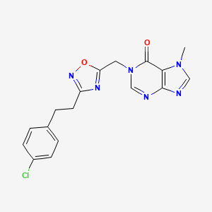 InChI=1S/C17H15ClN6O2/c1-23-9-19-16-15(23)17(25)24(10-20-16)8-14-21-13(22-26-14)7-4-11-2-5-12(18)6-3-11/h2-3,5-6,9-10H,4,7-8H2,1H3 | |
