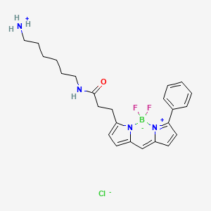 InChI=1S/C24H29BF2N4O.ClH/c26-25(27)30-20(13-15-24(32)29-17-7-2-1-6-16-28)10-11-21(30)18-22-12-14-23(31(22)25)19-8-4-3-5-9-19;/h3-5,8-12,14,18H,1-2,6-7,13,15-17,28H2,(H,29,32);1H | |
