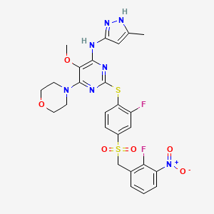 CC1=CC(=NN1)NC2=C(C(=NC(=N2)SC3=C(C=C(C=C3)S(=O)(=O)CC4=C(C(=CC=C4)[N+](=O)[O-])F)F)N5CCOCC5)OC | |
