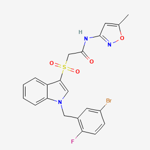 InChI=1S/C21H17BrFN3O4S/c1-13-8-20(25-30-13)24-21(27)12-31(28,29)19-11-26(18-5-3-2-4-16(18)19)10-14-9-15(22)6-7-17(14)23/h2-9,11H,10,12H2,1H3,(H,24,25,27) | |