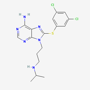 CC(C)NCCCN1C2=NC=NC(=C2N=C1SC3=CC(=CC(=C3)Cl)Cl)N | |