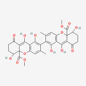 methyl (4R,4aR)-7-[(5R,10aR)-1,5,9-trihydroxy-10a-methoxycarbonyl-3-methyl-8-oxo-6,7-dihydro-5H-xanthen-2-yl]-4,8,9-trihydroxy-6-methyl-1-oxo-3,4-dihydro-2H-xanthene-4a-carboxylate has been reported in Penicillium with data available.