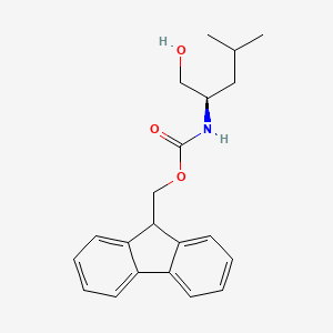 This compound is the N-protected form of D-leucinol, where the amino group is protected by the fluorenylmethoxycarbonyl (Fmoc) group. This protection strategy is fundamental to modern Solid-Phase Peptide Synthesis (SPPS), as the Fmoc group is stable to a wide range of reaction conditions but can be readily removed under mild basic conditions, typically with piperidine.[1][] This orthogonality allows for the selective deprotection and elongation of a peptide chain without compromising acid-labile side-chain protecting groups.[][3]