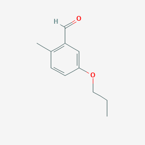 2-Methyl-5-propoxybenzaldehyde can be synthesized through several synthetic routes. One common method involves the alkylation of 2-methyl-5-hydroxybenzaldehyde with propyl bromide in the presence of a base such as potassium carbonate. The reaction typically occurs in an organic solvent like dimethylformamide (DMF) at elevated temperatures .