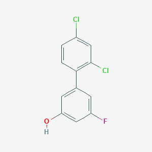 The mechanism of action of 5-(2,4-Dichlorophenyl)-3-fluorophenol involves its interaction with specific molecular targets. The compound may bind to enzymes or receptors, altering their activity and leading to various biological effects. The exact pathways and targets depend on the specific application and context of use.