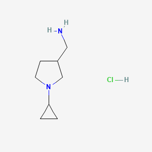 [(1-Cyclopropylpyrrolidin-3-YL)methyl]amine hydrochloride is a compound of increasing interest in pharmacological research due to its unique structural properties and potential therapeutic applications. This article explores its biological activity, mechanisms of action, and relevant case studies.