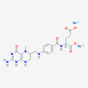 disodium;2-[[4-[(2-amino-5-methyl-4-oxo-1,6,7,8-tetrahydropteridin-6-yl)methylamino]benzoyl]amino]pentanedioate has a wide range of scientific research applications, including its use in chemistry, biology, medicine, and industry. In chemistry, it is used as a reagent for various chemical reactions and as a building block for synthesizing more complex molecules. In biology, this compound is studied for its potential biological activities and interactions with biomolecules. In medicine, it is investigated for its potential therapeutic effects and mechanisms of action. In industry, this compound is used in the production of various chemical products and materials .