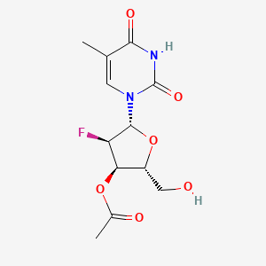 2'α-Fluoro-3'-O-acetylthymidine is a synthetic nucleoside derivative featuring a fluorine atom at the 2'α position and an acetyl group at the 3'-hydroxyl of the deoxyribose sugar. This modification combines fluorination, a common strategy to enhance metabolic stability in nucleoside analogs, with a protective acetyl group that may influence reactivity and pharmacokinetics.