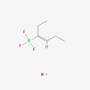 potassium;trifluoro-[(Z)-hex-3-en-3-yl]boranuide has a wide range of scientific research applications. It is used in chemistry for the synthesis of peptides and other complex molecules. In biology, it is employed as a reagent for detecting specific biomolecules. In medicine, it may be used in the development of new drugs and therapeutic agents. Industrial applications include its use in the production of various chemical products and materials .