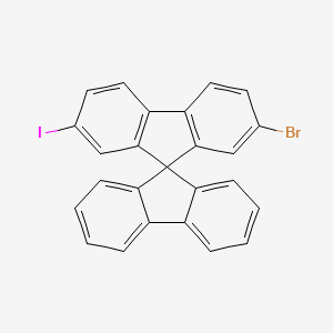 The mechanism of action of 2-Bromo-7-iodo-9,9’-spirobi[fluorene] depends on its specific application. In the context of OLEDs, the compound functions by emitting light when an electric current is applied, due to its high photoluminescence efficiency. In biological systems, it may interact with specific molecular targets, such as enzymes or receptors, to exert its effects. The exact pathways and molecular targets involved are subjects of ongoing research .