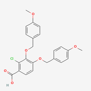 Synthetic Routes and Reaction Conditions: The synthesis of 2-Chloro-3,4-bis((4-methoxybenzyl)oxy)benzoic acid typically involves the reaction of 2-chlorobenzoic acid with 4-methoxybenzyl alcohol in the presence of a suitable catalyst. The reaction is carried out under controlled temperature and pressure conditions to ensure the selective formation of the desired product .