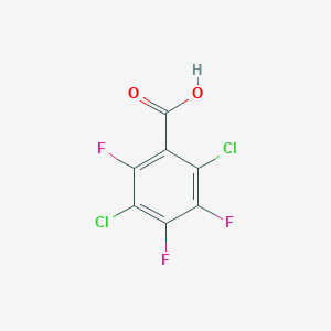 2,5-Dichloro-3,4,6-trifluorobenzoic acid is a halogenated benzoic acid derivative with a molecular formula of C₇HCl₂F₃O₂ and a molecular weight of 244.98 g/mol (CAS: 13656-36-5). It is structurally characterized by chlorine atoms at positions 2 and 5 and fluorine atoms at positions 3, 4, and 6 on the benzene ring, with a carboxylic acid group at position 1. This compound is commercially available and stored under dry conditions at 2–8°C .