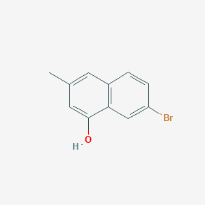 7-Bromo-3-methylnaphthalen-1-ol (C₁₁H₉BrO, MW ≈ 229.09 g/mol) is a substituted naphthol featuring a hydroxyl group at position 1, a bromine atom at position 7, and a methyl group at position 3 of the naphthalene ring. Naphthalenol derivatives are critical intermediates in organic synthesis, particularly in pharmaceuticals, due to their aromaticity and reactivity.