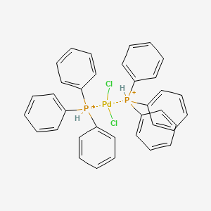 Bis(triphenylphosphine)palladium(II) dichloride, also known as this compound, is an organometallic complex with the chemical formula PdCl₂(PPh₃)₂. It is a yellow crystalline powder that is insoluble in water but soluble in organic solvents such as benzene and toluene. This compound is widely used as a catalyst in various organic synthesis reactions, particularly in cross-coupling reactions like the Suzuki, Heck, and Sonogashira couplings .