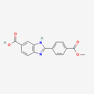 2-(4-Methoxycarbonylphenyl)-1H-benzimidazole-5-carboxylic acid is unique due to its combination of a benzimidazole core with a methoxycarbonylphenyl group and a carboxylic acid group. This unique structure imparts specific chemical and biological properties that differentiate it from other similar compounds.