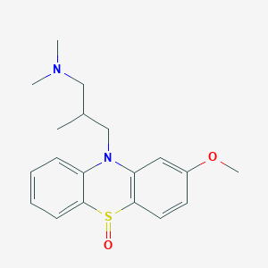 10H-Phenothiazine-10-propanamine, 2-methoxy-N,N,beta-trimethyl-, 5-oxide, commonly referred to as methotrimeprazine sulfoxide, is a compound belonging to the phenothiazine class of drugs. This compound is noted for its diverse biological activities, particularly in the fields of psychiatry and neurology. Its chemical structure is characterized by a phenothiazine core with a methoxy group and a trimethylpropanamine side chain, contributing to its pharmacological properties.