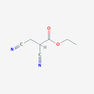 Ethyl 2,3-dicyanopropionate is a versatile organic compound and a key synthetic intermediate.[1] With the chemical formula C₇H₈N₂O₂, this ester is of significant interest in medicinal and agricultural chemistry.[1] Its molecular structure, featuring two cyano groups and an ester functional group, provides multiple reactive sites, making it a valuable precursor for the synthesis of a variety of heterocyclic compounds, most notably pyrazole derivatives.[2] This guide provides a comprehensive overview of the physicochemical properties, synthesis, and applications of this compound, with a focus on its role in the development of agrochemicals.
