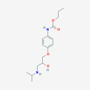 Propyl N-[4-[2-hydroxy-3-(propan-2-ylamino)propoxy]phenyl]carbamate is a synthetic compound belonging to the carbamate family, characterized by its molecular formula . This compound has garnered attention for its significant biological activity, particularly as a beta-adrenergic receptor antagonist. Its unique structure, which includes a propyl group, a phenyl ring, and a hydroxypropoxy side chain, contributes to its pharmacological properties and potential therapeutic applications in various medical fields.
