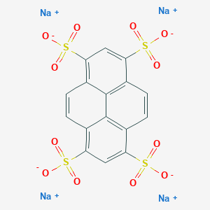 1,3,6,8-Pyrenetetrasulfonic acid tetrasodium salt (PTSA) is a water-soluble fluorescent compound derived from pyrene, featuring four sulfonate (-SO₃⁻) groups symmetrically substituted at the 1,3,6,8-positions. Its synthesis involves a one-step sulfonation reaction using pyrene and fuming sulfuric acid, followed by neutralization with sodium carbonate, yielding a yellow crystalline solid . PTSA exhibits strong blue fluorescence (emission at 396 and 404 nm) under UV excitation (284 nm), attributed to its π–π* transitions stabilized by electron-withdrawing sulfonate groups . Key applications include anti-counterfeiting inks, biosensors, and coordination polymers, leveraging its high solubility, photostability, and compatibility with hydrophilic matrices like hydroxyethyl cellulose (HEC) .