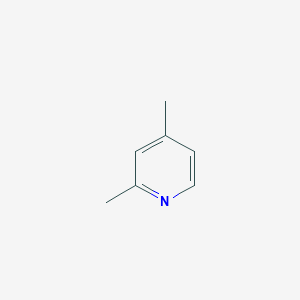 This compound is a substituted pyridine characterized by methyl groups at the 2 and 4 positions of the aromatic ring. This substitution pattern imparts specific chemical properties that make it a valuable intermediate in organic synthesis. The industrial production of this compound predominantly relies on the Chichibabin pyridine synthesis, a robust and scalable method involving the condensation of aldehydes and ketones with ammonia (B1221849) at elevated temperatures over a solid catalyst.[2] This guide will focus on the synthesis of this compound from readily available starting materials: acetaldehyde (B116499), acetone (B3395972), and ammonia.