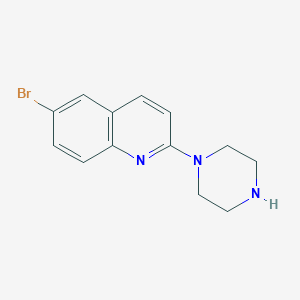 El mecanismo de acción de 6-Bromo-2-piperazin-1-il-quinolina implica su interacción con objetivos moleculares específicos, como enzimas y receptores. El anillo de piperazina permite que el compuesto se una eficazmente a estos objetivos, modulando su actividad y provocando varios efectos biológicos . El átomo de bromo en la posición 6 mejora la afinidad de unión y la especificidad del compuesto .