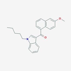 Methanone, (6-methoxy-1-naphthalenyl)(1-pentyl-1H-indol-3-yl)- is known to interact with the cannabinoid receptors CB1 and CB2. These receptors are proteins that play a crucial role in the endocannabinoid system, a signaling system in the body that regulates a wide array of physiological processes.