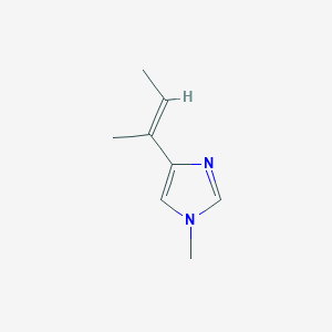 The mechanism of action of 4-[(E)-but-2-en-2-yl]-1-methylimidazole involves its interaction with specific molecular targets and pathways. The compound can bind to enzymes or receptors, modulating their activity and leading to various biological effects. For example, it may inhibit the growth of microorganisms by interfering with essential metabolic pathways or by disrupting cell membrane integrity. The exact molecular targets and pathways involved depend on the specific biological context and the nature of the compound’s interactions with cellular components.