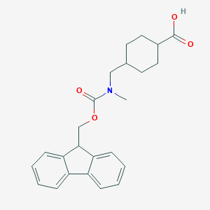 An in-depth look at the synthesis of this compound reveals significant methodological advancements aimed at improving efficiency, purity, and yield. This derivative of tranexamic acid, featuring both a fluorenylmethoxycarbonyl (Fmoc) protecting group and an N-methyl group, is a valuable building block in peptide synthesis and drug development. chemimpex.combapeks.com The synthetic challenges associated with sterically hindered N-methylated amino acids have driven the development of specialized protocols in both solid-phase and solution-phase chemistry.