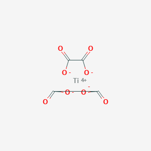 The primary challenge in the synthesis of this compound from titanium tetrachloride in an aqueous medium is the rapid and highly exothermic hydrolysis of TiCl₄, which favors the formation of titanium dioxide and its hydrated forms. Therefore, the reaction must be carefully controlled to direct the chemical pathway towards the formation of the desired this compound complex. The product of this reaction is often not a simple titanium(IV) oxalate but rather a more complex species, frequently identified as titanyl oxalate or a hydrated variant.