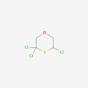 - Volatility and Solubility : this compound is expected to exhibit lower volatility and water solubility than 1,4-oxathiane due to chlorine substituents, similar to trends observed between 1,4-dithiane and chlorinated dioxanes .
