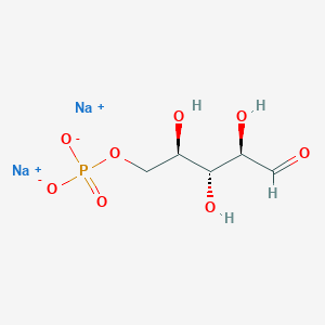 This compound is a disodium salt of a phosphorylated pentose derivative with the molecular formula C₅H₉Na₂O₉P and a molecular weight of 290.08 g/mol. Its structure features a trihydroxy-oxopentyl backbone linked to a dihydrogen phosphate group, stabilized by disodium counterions. The stereochemistry (2R,3R,4R) indicates a specific spatial arrangement of hydroxyl groups, which is critical for its biochemical interactions.