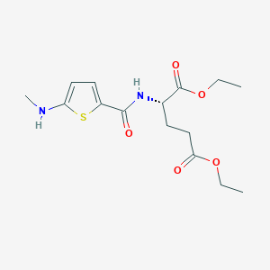 The mechanism of action of (S)-Diethyl 2-(5-(methylamino)thiophene-2-carboxamido)pentanedioate involves its interaction with specific molecular targets. The thiophene ring can participate in π-π stacking interactions, while the carboxamido and methylamino groups can form hydrogen bonds with target molecules. These interactions can modulate the activity of enzymes or receptors, leading to various biological effects.
