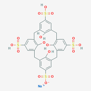 Research has shown that related water-soluble resorcin scientificlabs.co.ukarenes can selectively complex with heavy metals such as Cu²⁺, Pb²⁺, and Hg²⁺ mdpi.com. For instance, tetrasodium 5,11,17,23-tetrakissulfonatemethylen 2,8,14,20-tetra(butyl)resorcin scientificlabs.co.ukarene has been found to form complexes with Cu²⁺ in a 1:1 ratio and with Pb²⁺ in a 1:2 ratio mdpi.com. This suggests that the sulfonate groups play a crucial role in the binding process. Given the structural similarities, it is inferred that 4-sulfocalix scientificlabs.co.ukarene sodium salt would also exhibit significant interactions with various heavy metal ions, driven by the electrostatic forces contributed by its four sulfonate groups. Further research is focused on quantifying the binding affinities and selectivity of 4-sulfocalix scientificlabs.co.ukarene sodium salt for specific heavy metal ions to facilitate its application in targeted sequestration and sensing technologies.