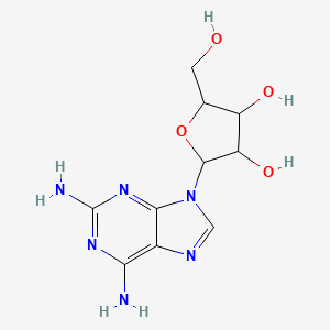The de novo synthesis pathway builds the purine ring from simple precursors. This intricate process involves a series of enzymatic or chemical reactions to assemble the imidazole (B134444) and pyrimidine (B1678525) rings that form the purine core. Once the 2,6-diaminopurine base is synthesized, it is attached to a ribose sugar, a process known as ribosylation.