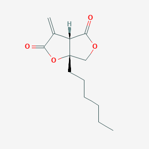 This compound is characterized by a tetrahydrofuro[3,4-b]furan-2,4-dione core. Its systematic name is (3aS,6R,6aR)-6-heptyl-3-methylenedihydrofuro[3,4-b]furan-2,4-dione.