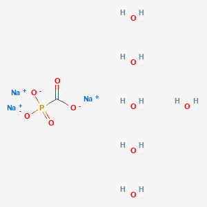 - Synthesis : The compound is typically synthesized via neutralization of phosphonoformic acid with sodium hydroxide in a stoichiometric ratio (1:3 for trisodium salt), followed by crystallization in aqueous media under controlled pH (7.0–8.5) and low-temperature conditions (2–8°C) to yield the hexahydrate form .