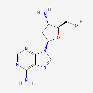 The chemical synthesis of this compound typically starts from the readily available 2'-deoxyadenosine. A common and efficient strategy involves the conversion of the 3'-hydroxyl group to an amino group via an azide intermediate. This multi-step process includes protection of the 5'-hydroxyl group, activation of the 3'-hydroxyl group, nucleophilic displacement with an azide salt, and finally, reduction of the azide to the desired amine.