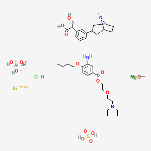 CCCCOC1=C(C=C(C=C1)C(=O)OCCOCCN(CC)CC)N.CN1C2CCC1CC(C2)C3=CC(=CC=C3)C(CO)C(=O)O.[OH-].[OH-].[OH-].[O-2].OS(=O)(=O)O.[Mg+2].[Al+3].[Si].Cl |