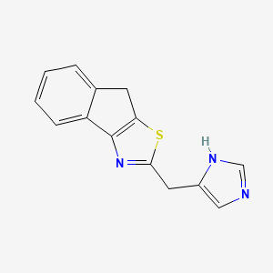 8H-Indeno(1,2-d)thiazole, 2-(1H-imidazol-4-ylmethyl)- is a heterocyclic compound that has garnered significant interest in the scientific community due to its potential applications in medicinal chemistry. This compound is characterized by the presence of an indeno-thiazole core structure, which is fused with an imidazole moiety. The unique structural features of this compound make it a promising candidate for various biochemical and pharmacological studies .